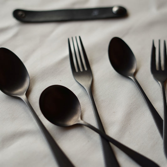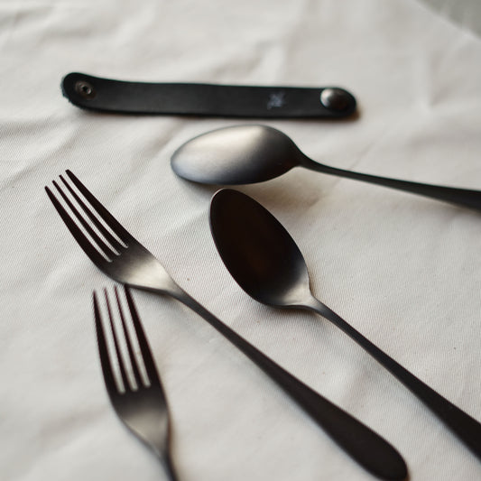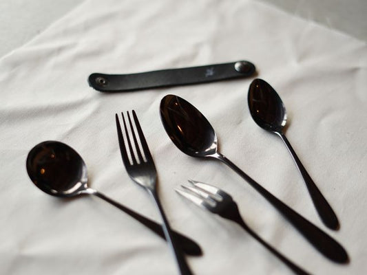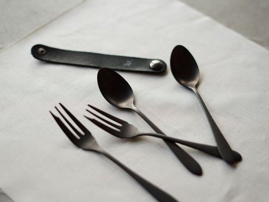 【96 KURO】カトラリー贈りものパッケージCざらざら|黒染め小型ステンレスカトラリーセット・日本製ギフト