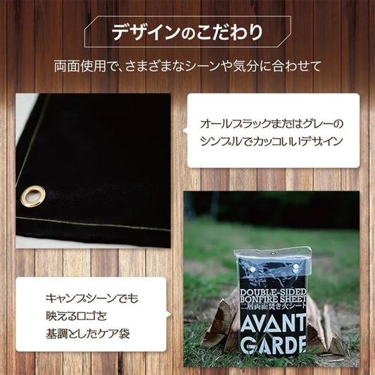 AVANT GARDE アバンギャルド 焚き火シート 二層両面焚き火シート 60*60cm ガラス繊維 シリコン加工 ブラック 瞬間使用温度1100℃ スパッタシート