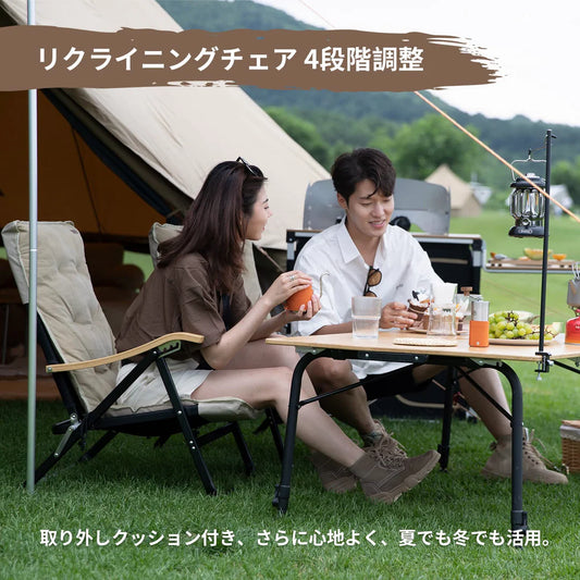 【KingCamp|キングキャンプ】MANGROVE P20 リクライニングチェア|4段階調整 折りたたみ式 クッション&竹製アーム付き