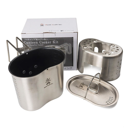 ブッシュクラフト キャンティーンクッカーキット 焦げ付きにくいフッ素 コーティング クッカー スタッキング ゴトクストーブ キャンプ用品 Bush Craft