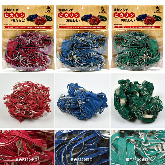 ブッシュクラフト 洗剤いらず ピカリン 布たわし 3色セット 焦げ落としに最適 金属のさび落とし 塗料はがし 野菜の泥落としや皮むき キャンプ用品 Bush Craft