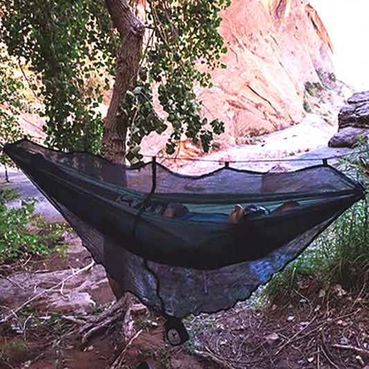 コロラド州デンバーで作られるハミングバードハンモックはスカイダイビングが大好きなオーナーがパラシュートに使われている素材を使い今までの常識を覆す軽さと小ささを目指し、かつ強靭さは損なわれないどこにでも持っていけるハンモックを作りたいと2014年に創業したメーカー。