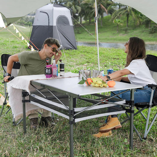 【KingCamp|キングキャンプ】アウトドアロールテーブル アルミキャンプテーブル 107×70×70cm(シルバー/ブラック)