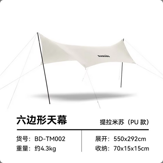 SHINE TRIP Outdoors(シャイン・トリップ/山趣)Hexagonal Vinyl Skylight 六角黒膠天幕(Gold/Black)