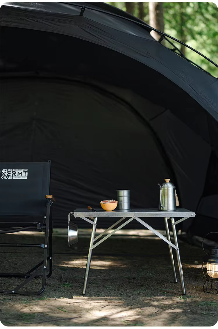自然の中で過ごす時間を、もっと快適に、美しく。 山趣は、テント、シェルター、テーブル&チェア、キッチンシステム、照明、収納など、 キャンプシーンをトータルで支えるモジュラー構造のギアを展開。 洗練されたデザインと高い機能性を両立し、 アウトドアの自由をスタイリッシュで心地よい体験へと導きます。