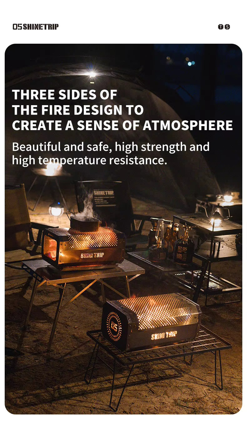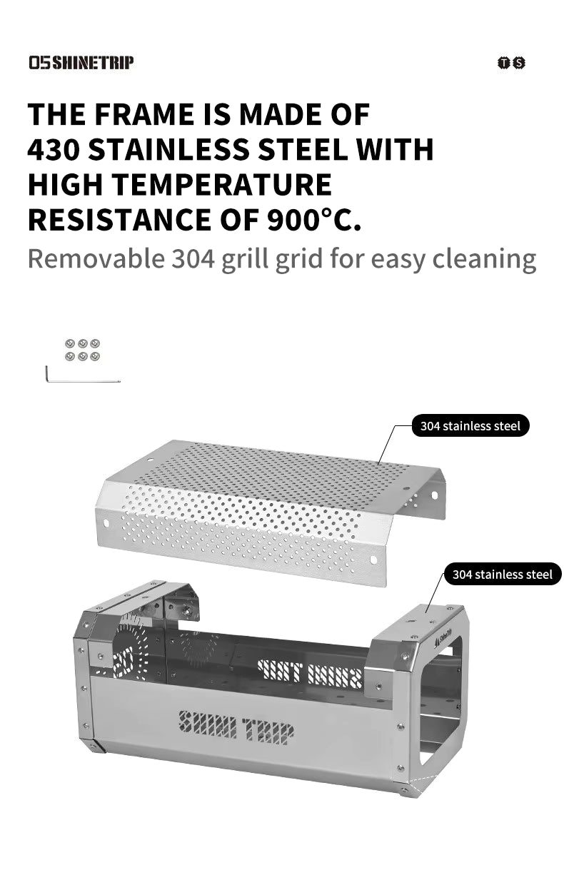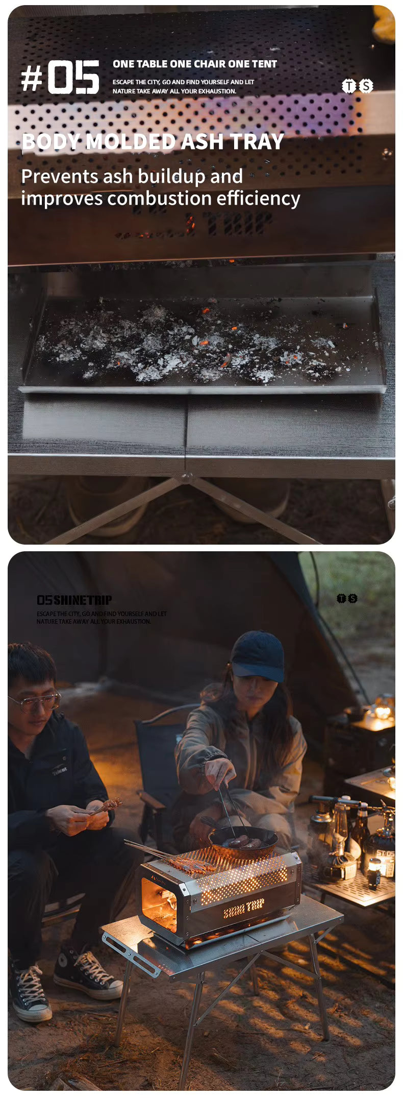 山趣(ShineTrip) 05シリーズ ステンレス 折りたたみキャンプテーブル&卓上ストーブ 2点セット