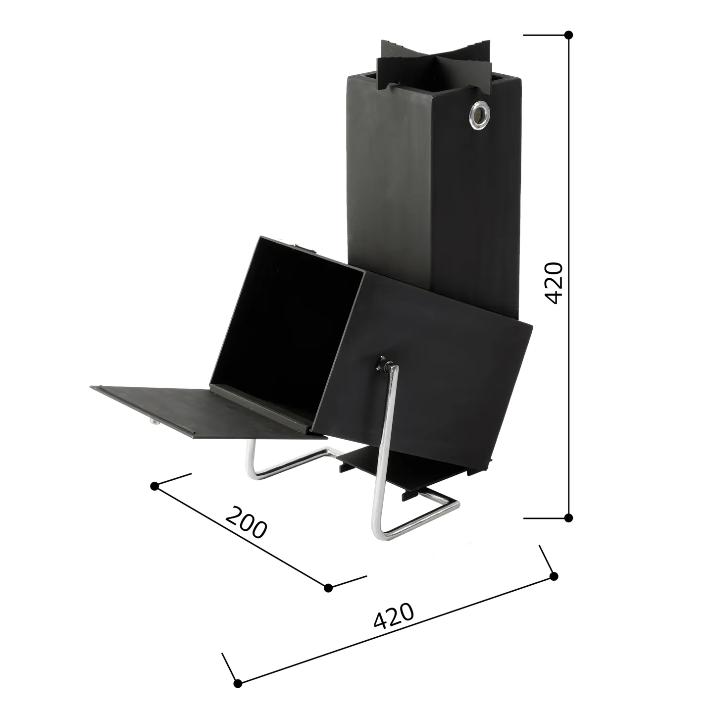 少量の燃料で短時間で強力な火力を発生させ、薪や小枝、落ち葉を使って素早く調理。キャンプ場や庭先での調理にぴったりです。