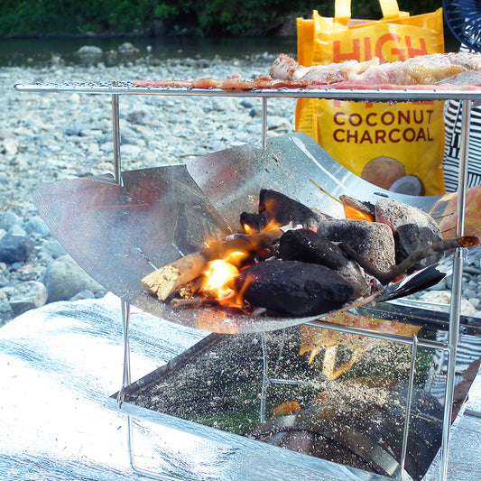 ステンレスメッシュ 折りたたみ焚き火台 ファイヤースタンド Huehuecoyotl Outdoor Works Stainless Mesh Fire Stand