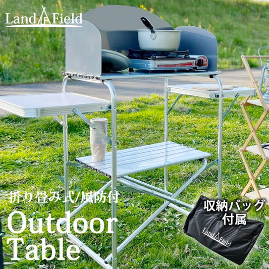 LandField ランドフィールド アウトドアテーブル 風防付きテーブル フォールディング キッチンテーブル クッキングテーブル LF-WOT010