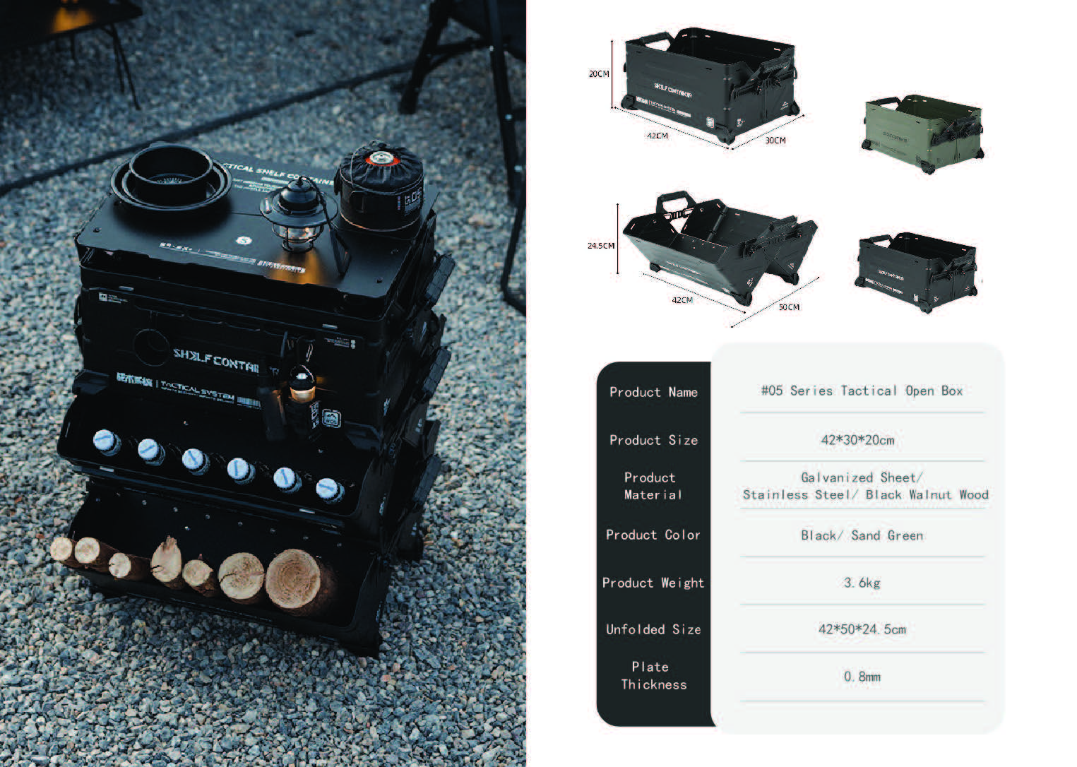 キャンプサイトで「薪・ギアが散らかる」「アルミボックスでは深さが足りない」といった悩みを解決するのが、SHINETRIP #05 Series Tactical Open Box。