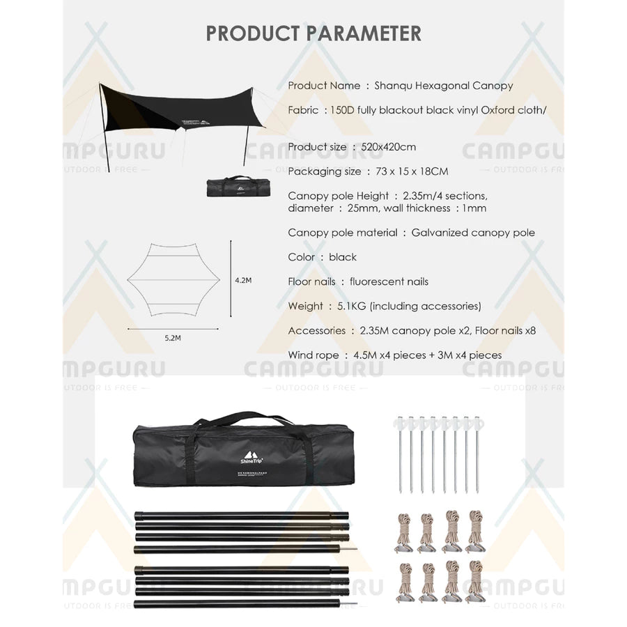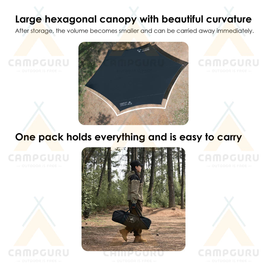 SHINE TRIP Outdoors(シャイン・トリップ/山趣)Hexagonal Vinyl Skylight 六角黒膠天幕(Gold/Black)