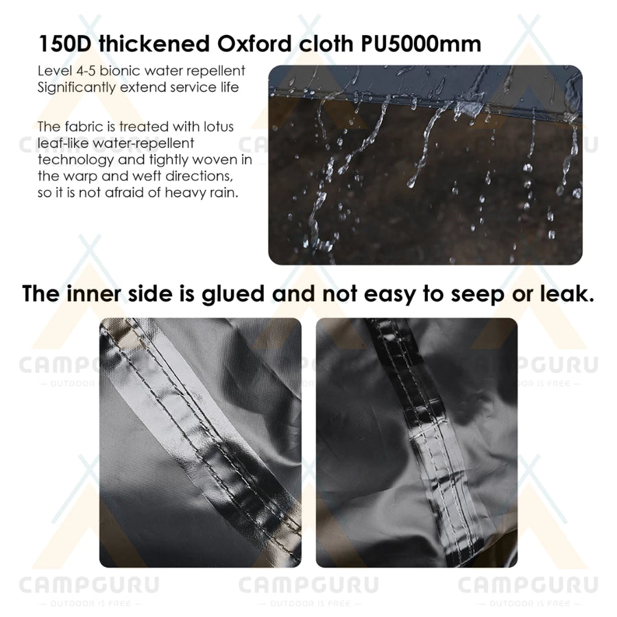 | 幕体素材 | 150Dフルブラックアウト・オックスフォード(PU5000mm/UPF50+) |