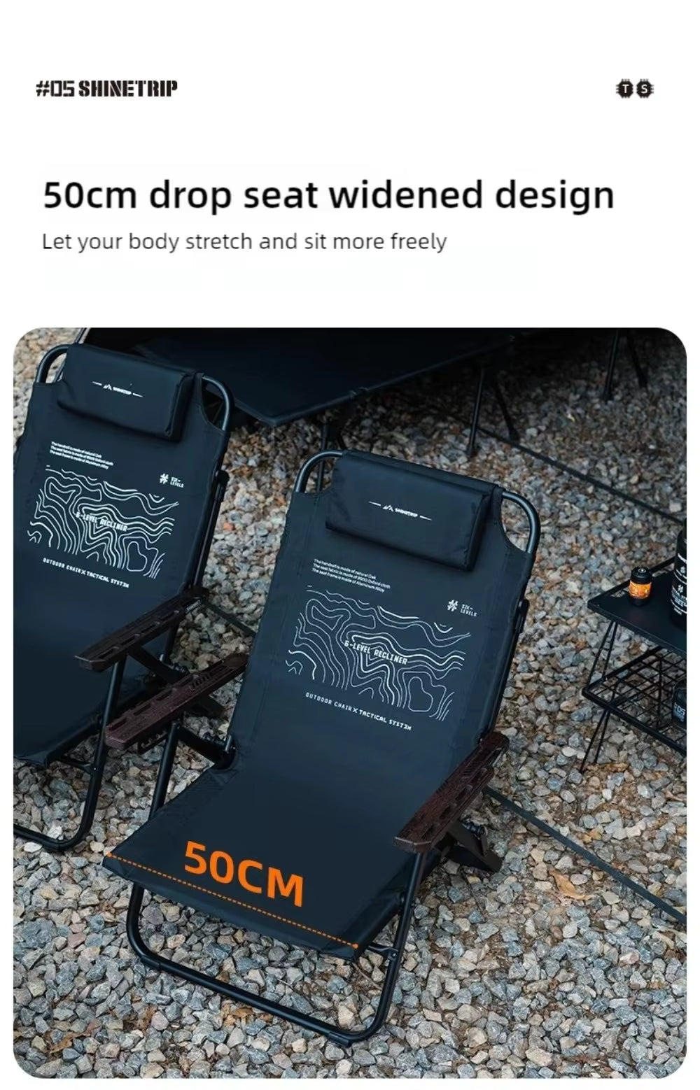 キャンプや釣り、アウトドアシーンで「長時間座ると疲れる」「リクライニング角度を細かく調整したい」といった悩みを解決するのが、SHINETRIP #05 Series Six-Gear Adjustable Lounge Chair。