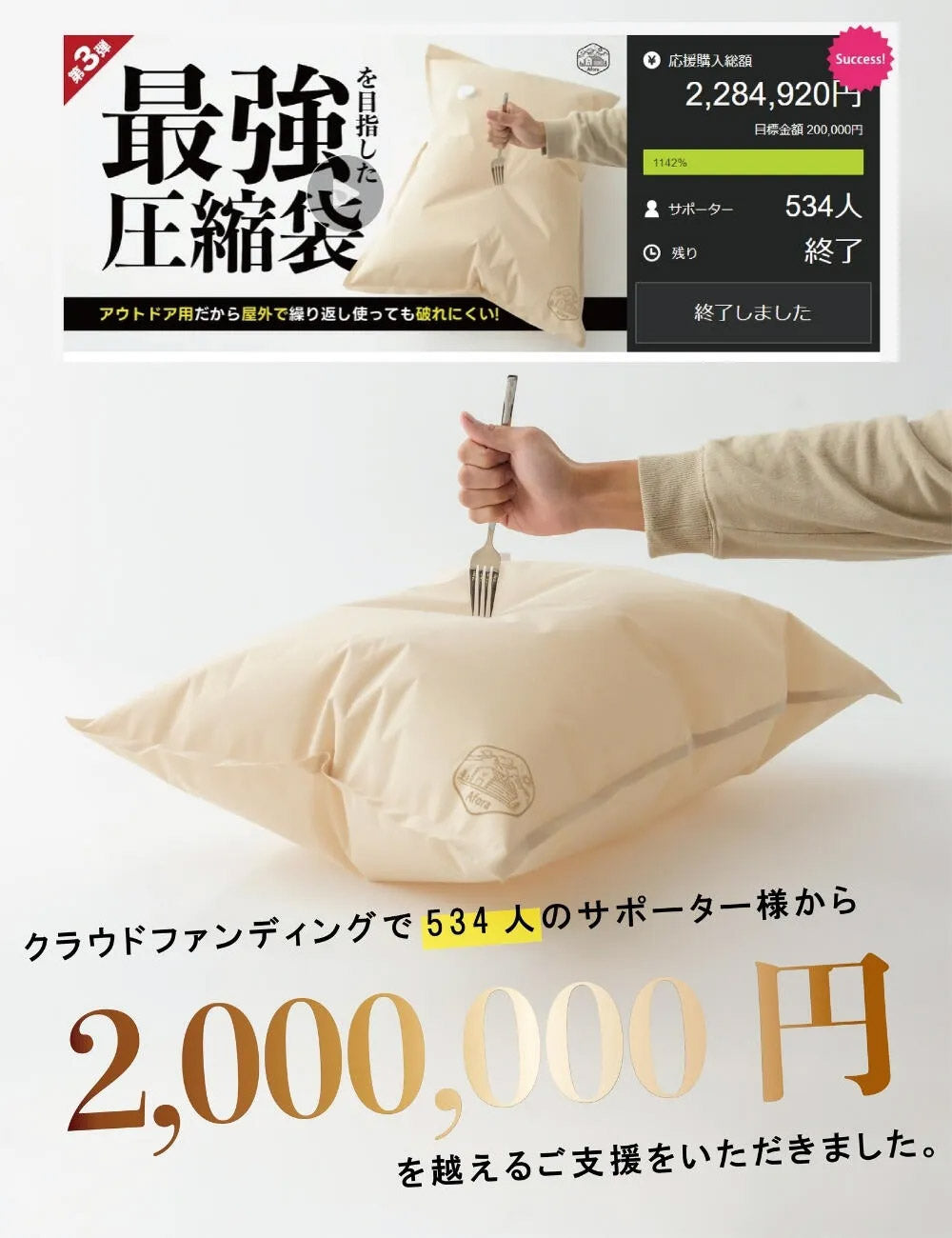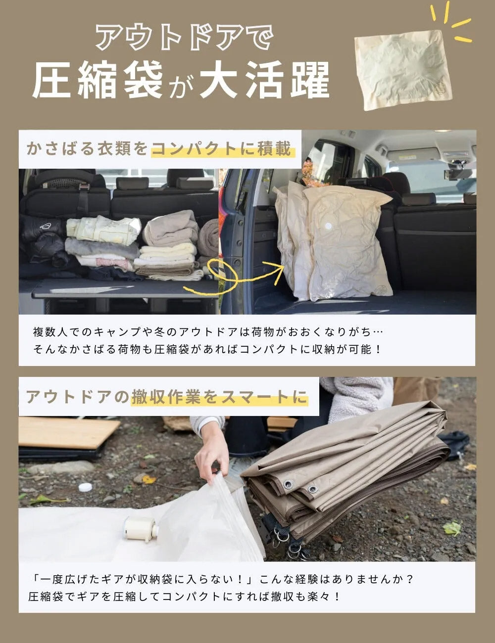 圧縮袋を存分に利用して、アウトドアライフをより快適に楽しんでください!