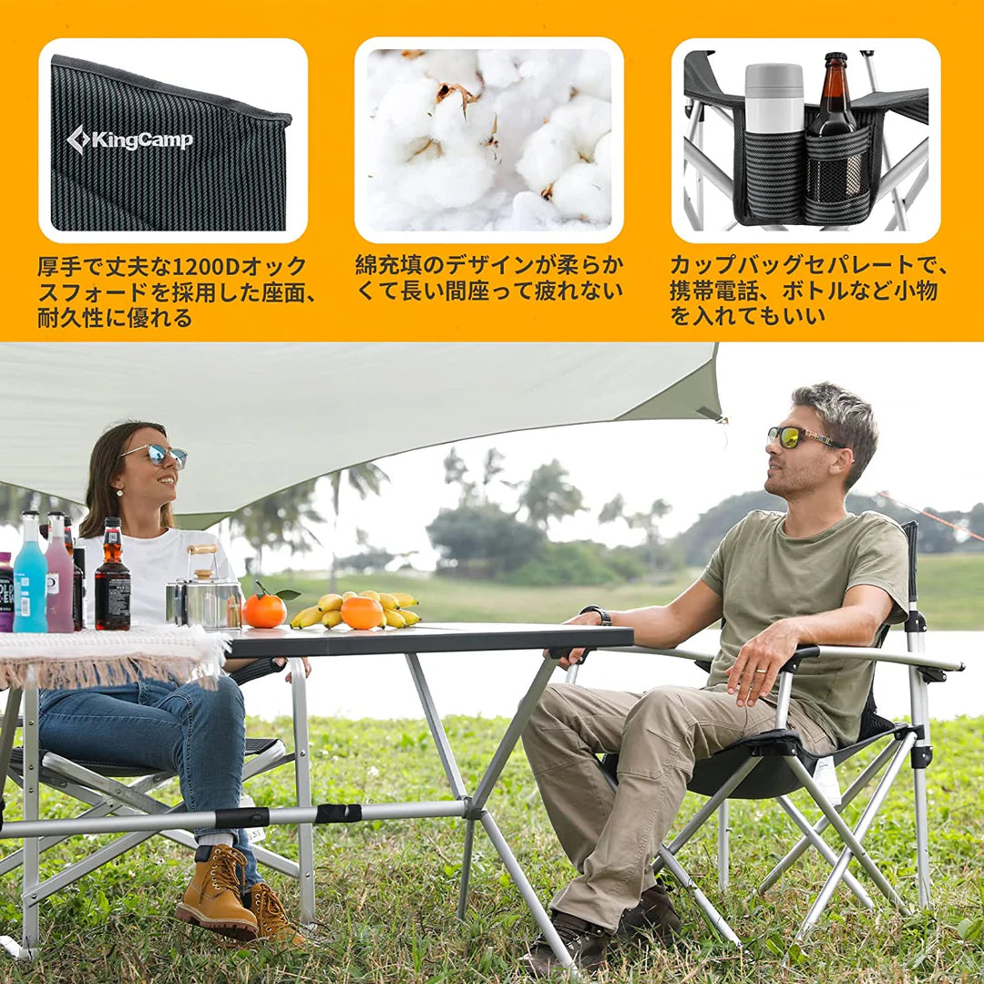 KingCamp STRIPS HARD ARM CHAIR – 肘掛け付きアウトドア折りたたみチェア