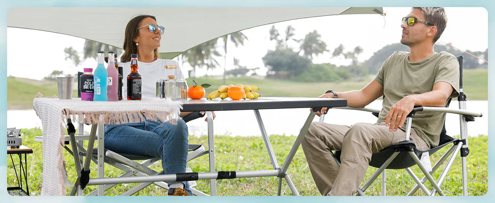収束型の折りたたみ構造で、広げるだけでセットアップ完了。持ち運びや保管もラクラクで、キャンプ・釣り・ピクニック・フェス・スポーツ観戦など幅広く活躍します。