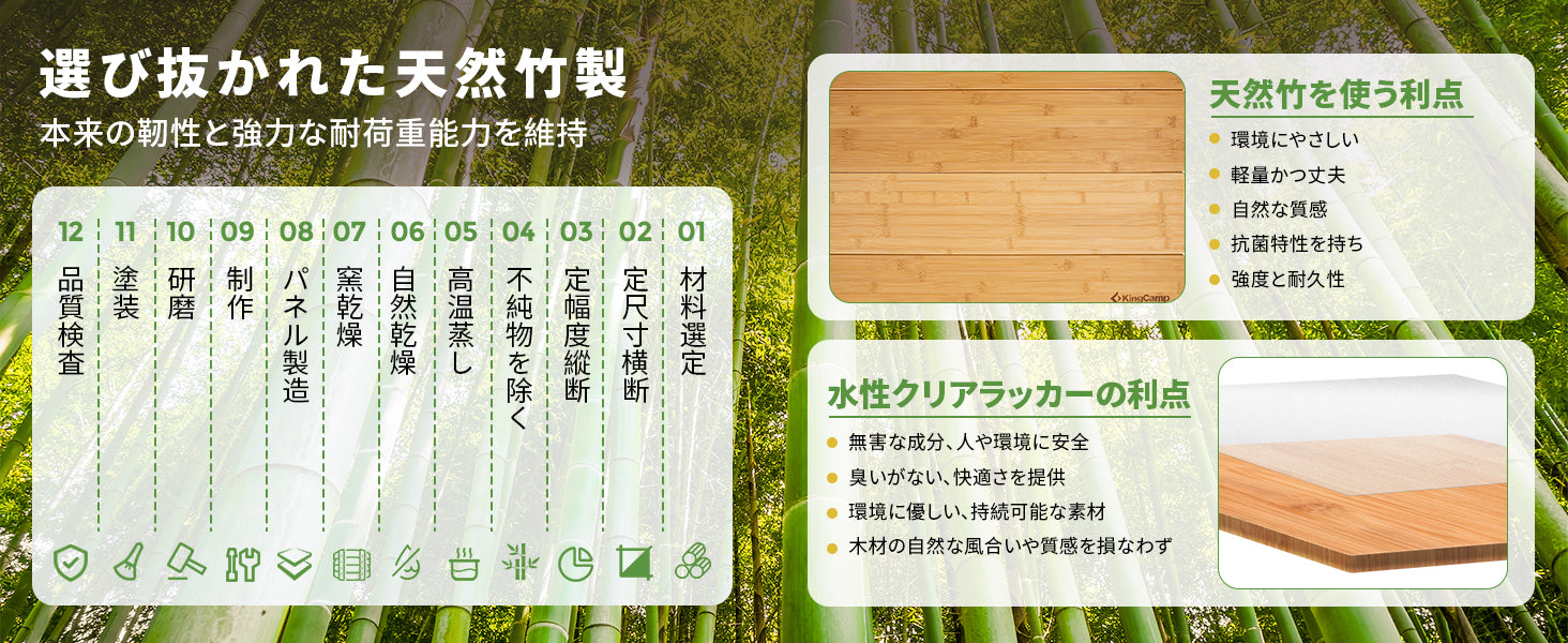 【KingCamp|キングキャンプ】BAMBOO P8060|竹製キャンプテーブル 80×60cm 高さ無段階調整(42〜70cm)