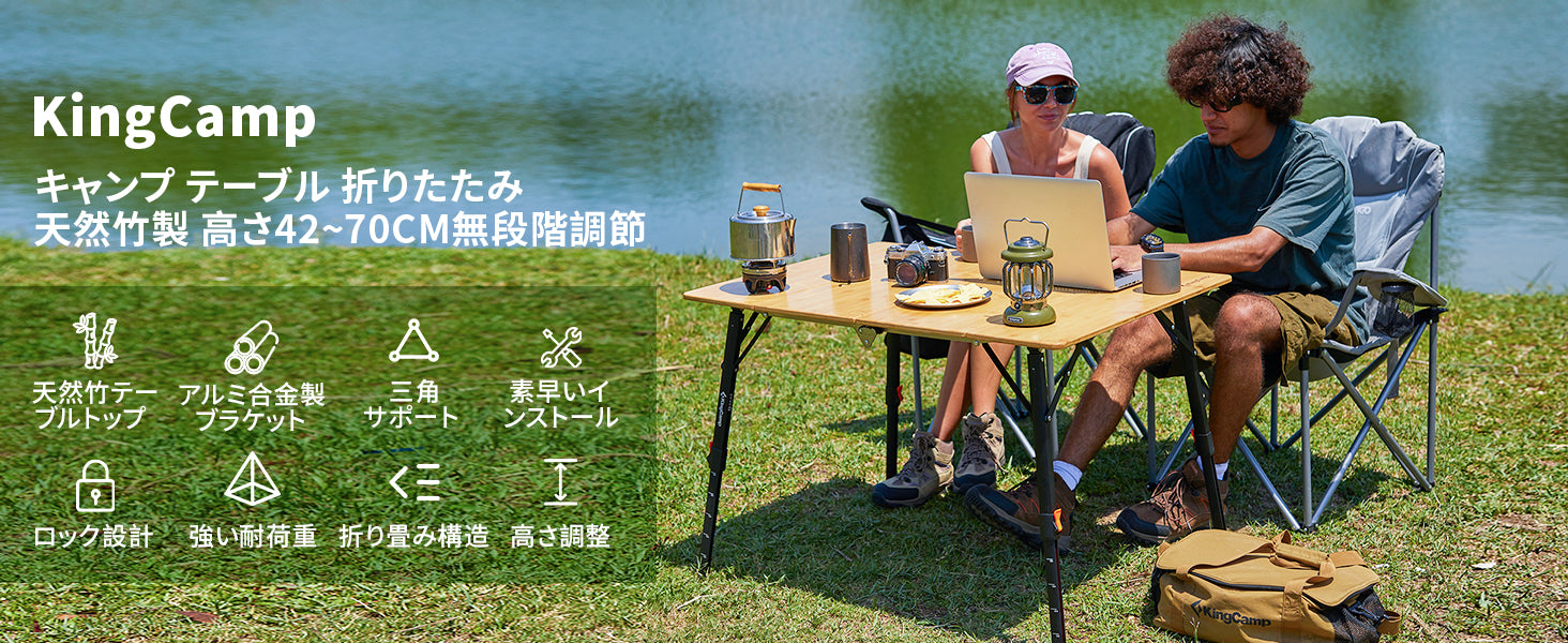 KingCamp BAMBOO P10070 – 竹天板×アルミ脚 無段階調整の大型テーブル