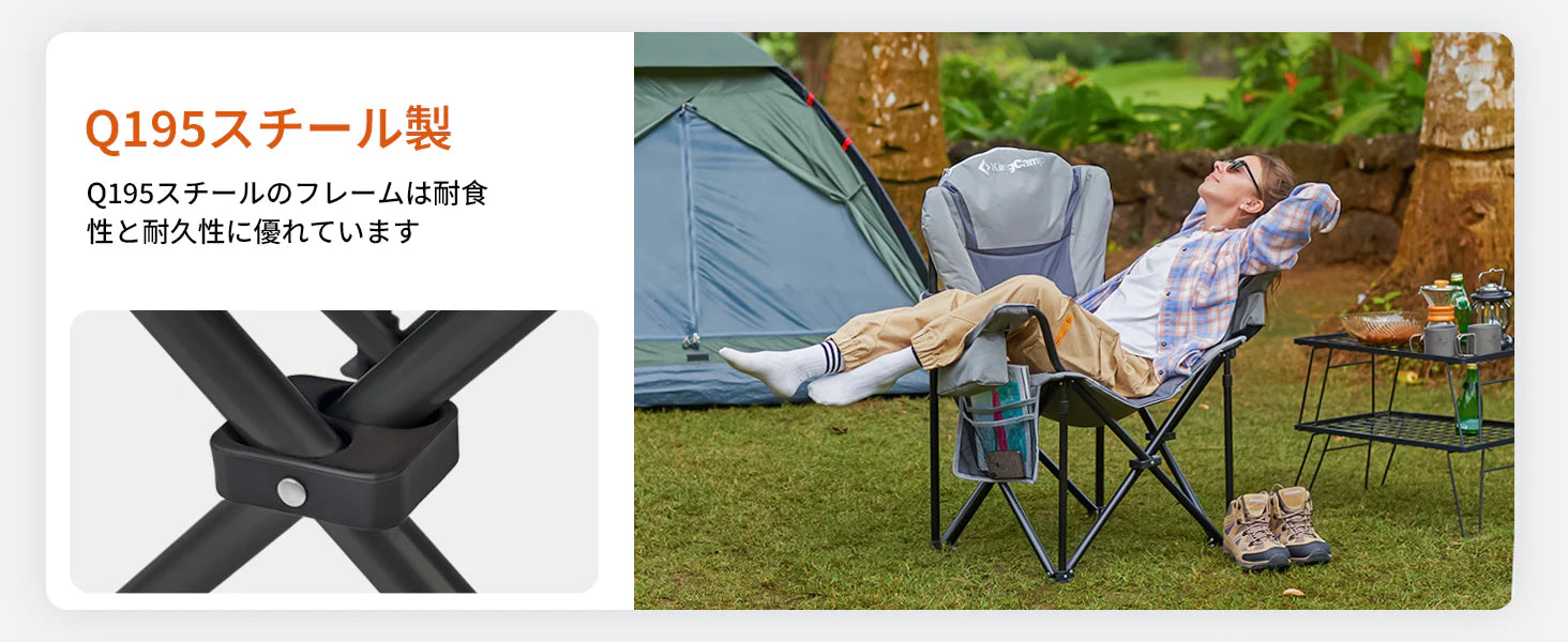 KingCamp ハイバック キャンピングアームチェア – 肘掛け付きアウトドア折りたたみチェア