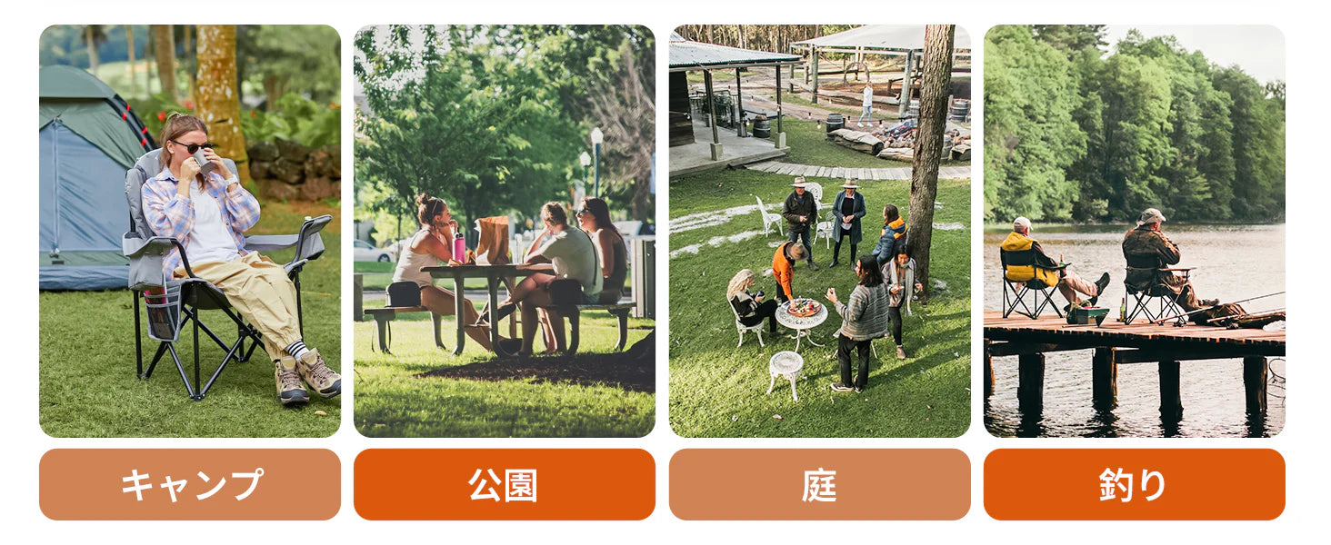 収束型の折りたたみ構造で、広げるだけで素早く設営。収納もコンパクトで車載や持ち運びに便利。キャンプ、釣り、ピクニック、スポーツ観戦など、幅広いシーンで活躍します。
