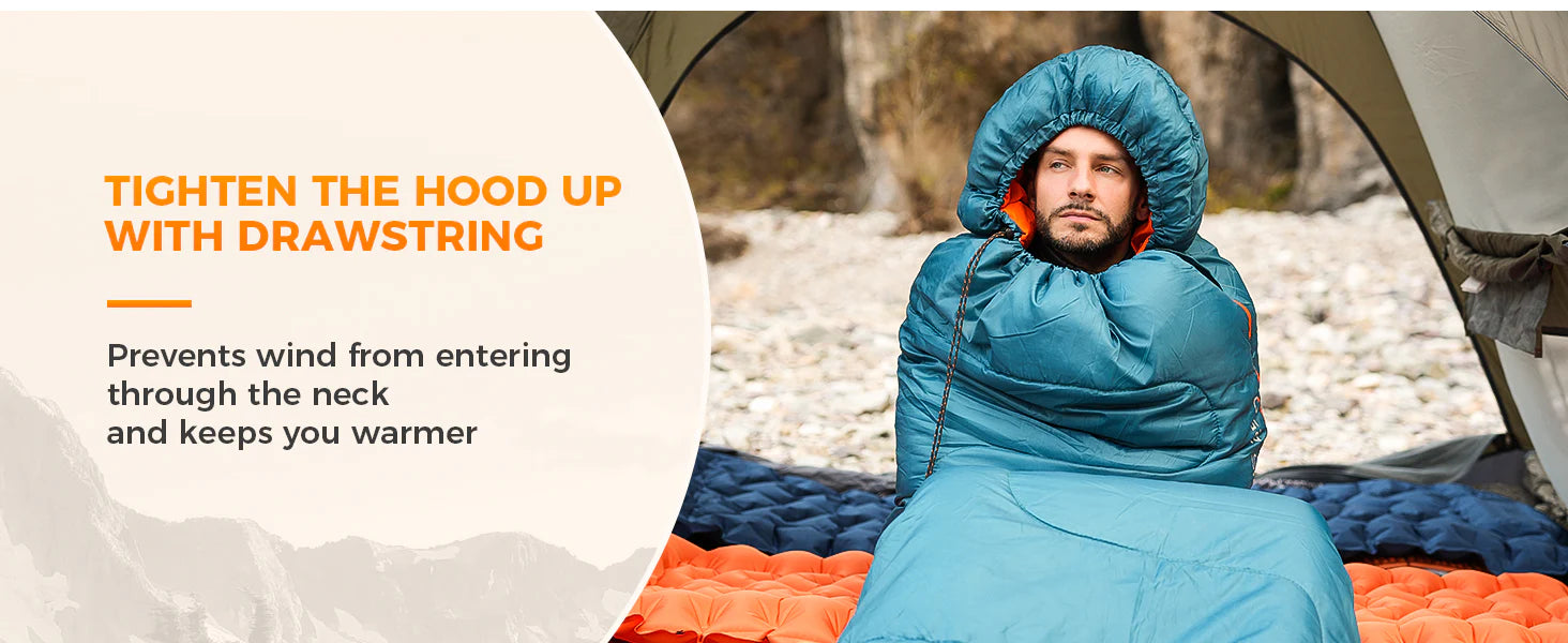 調整可能なドローコード付きフード:首元からの冷気を防ぐ