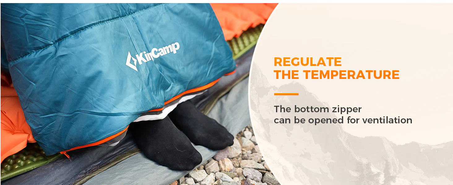 KingCamp TIGRIS 250 – スタイリッシュに眠る、コントラストカラー封筒型シュラフ