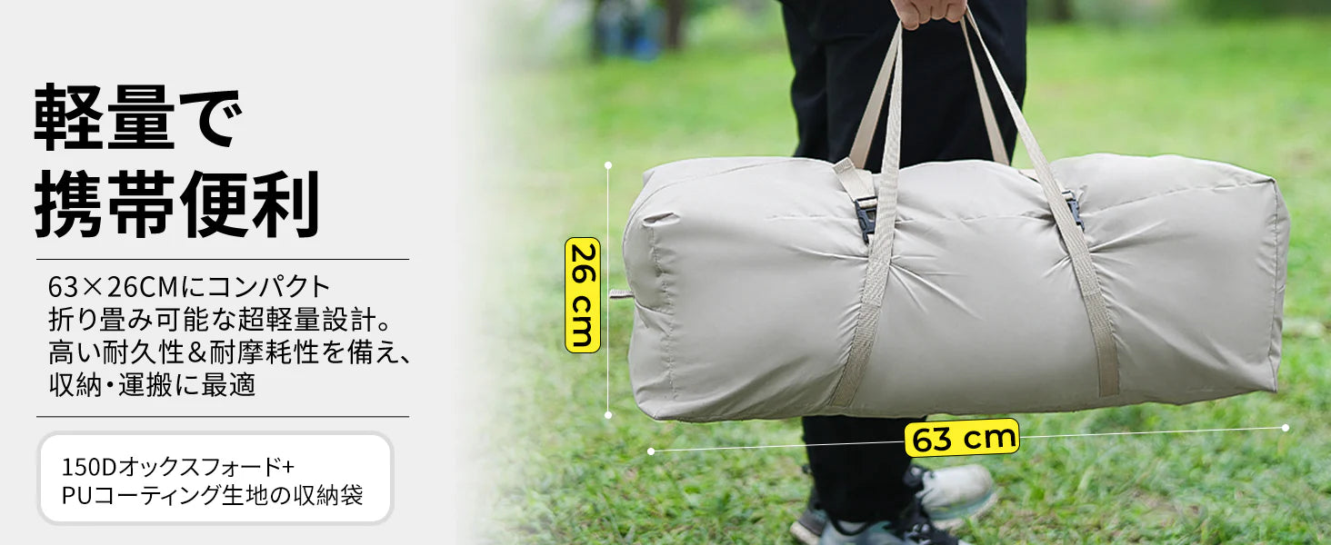 フライシート:150Dオックスフォード(耐水圧3000mm+、UVシルバー加工)