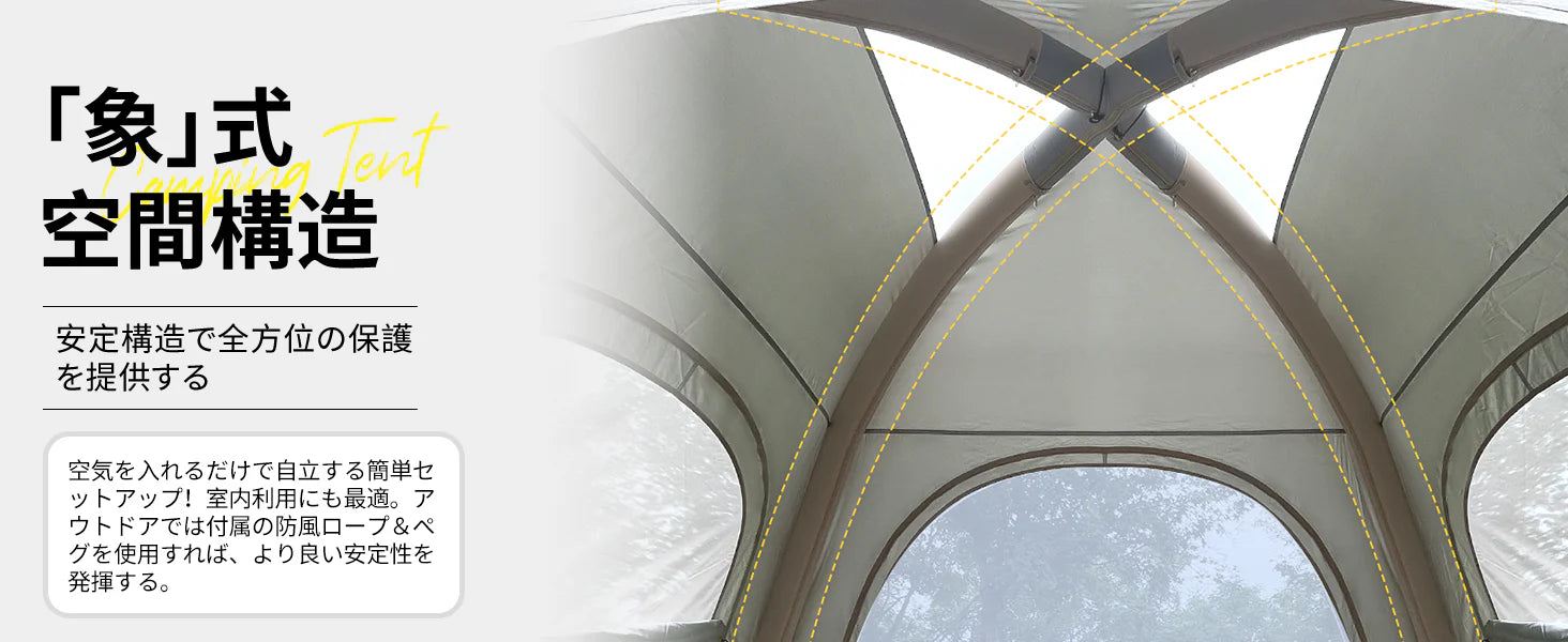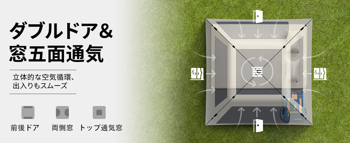 広々とした2人用スペース:展開サイズ240×220×160cm、天井高160cm