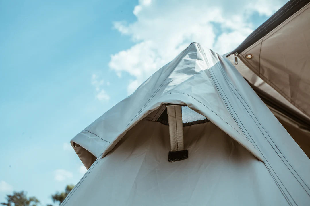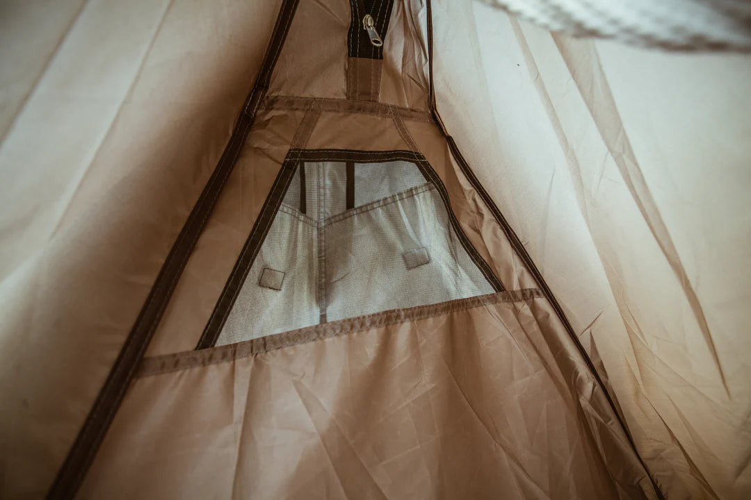 前後のダブルドアで通気性抜群。ベスティビュール(前室)は拡張式で、リビングスペースや日除け、またはプロジェクションスクリーンとしても使用可能。4箇所のベンチレーターで結露を防止します。