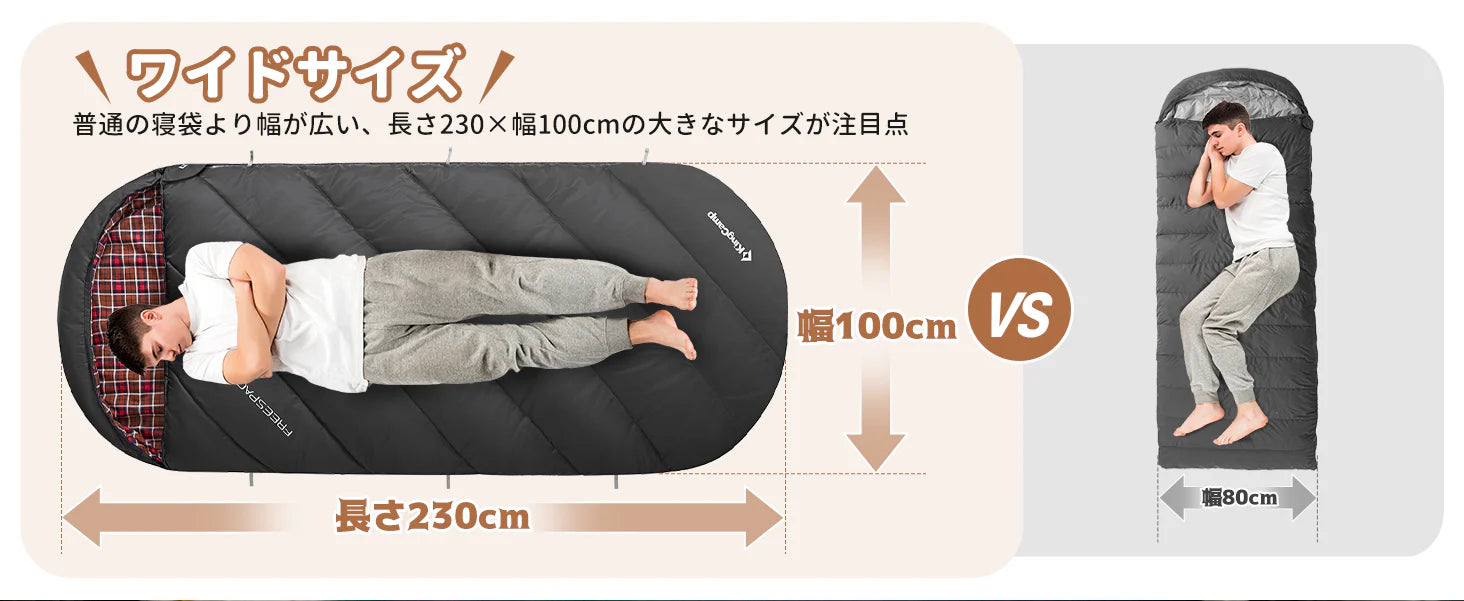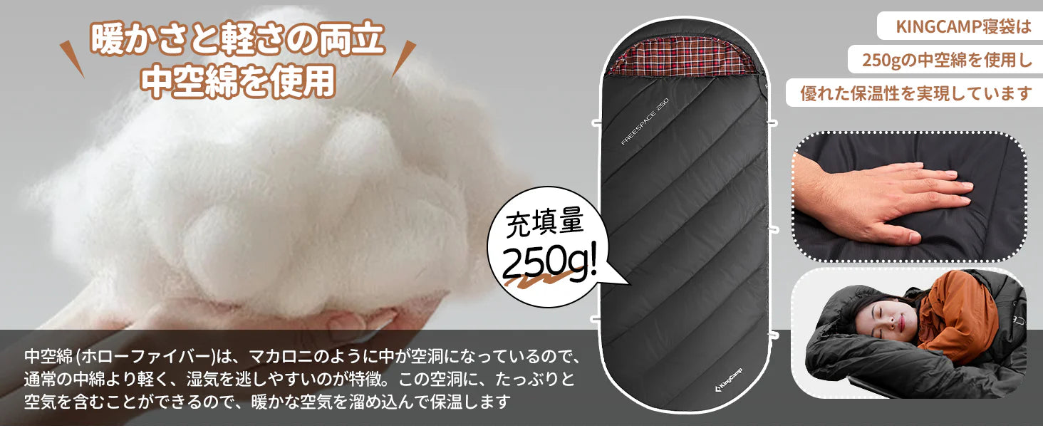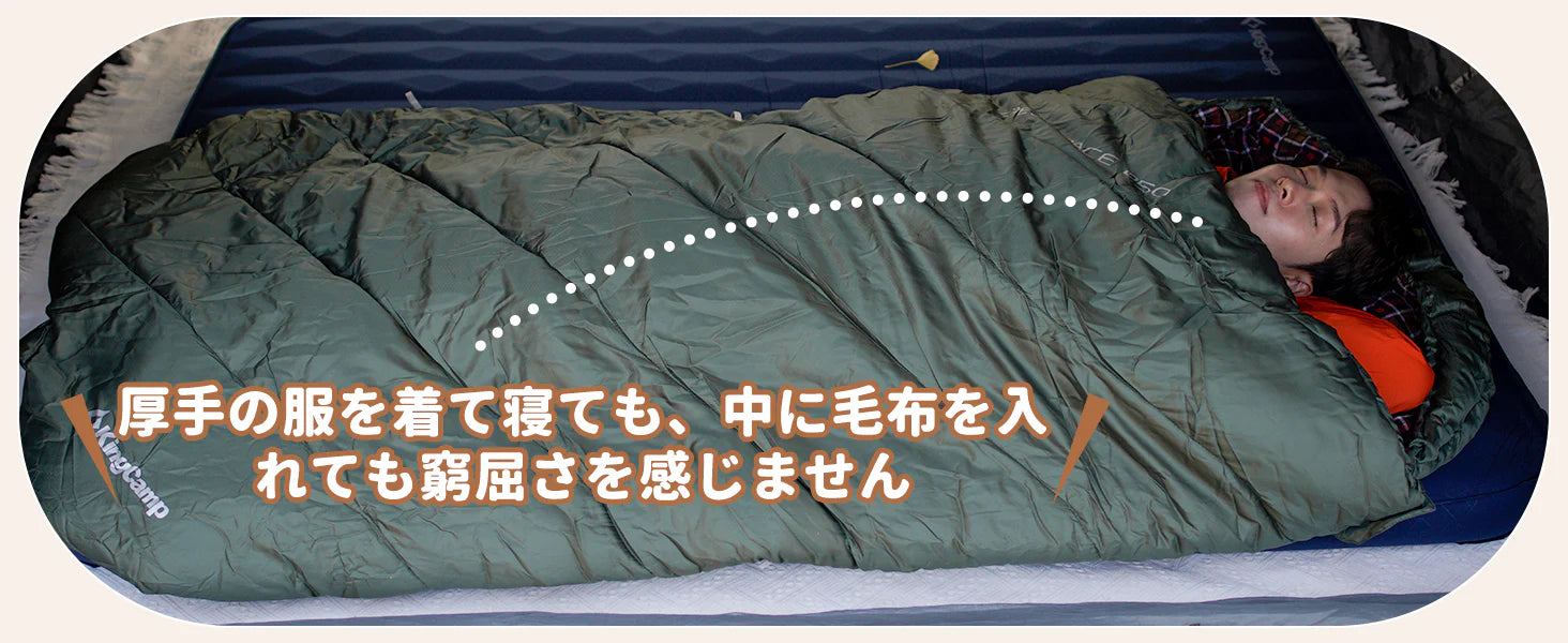KingCamp FREESPACE 250 – 広々サイズで快眠できるフランネル寝袋