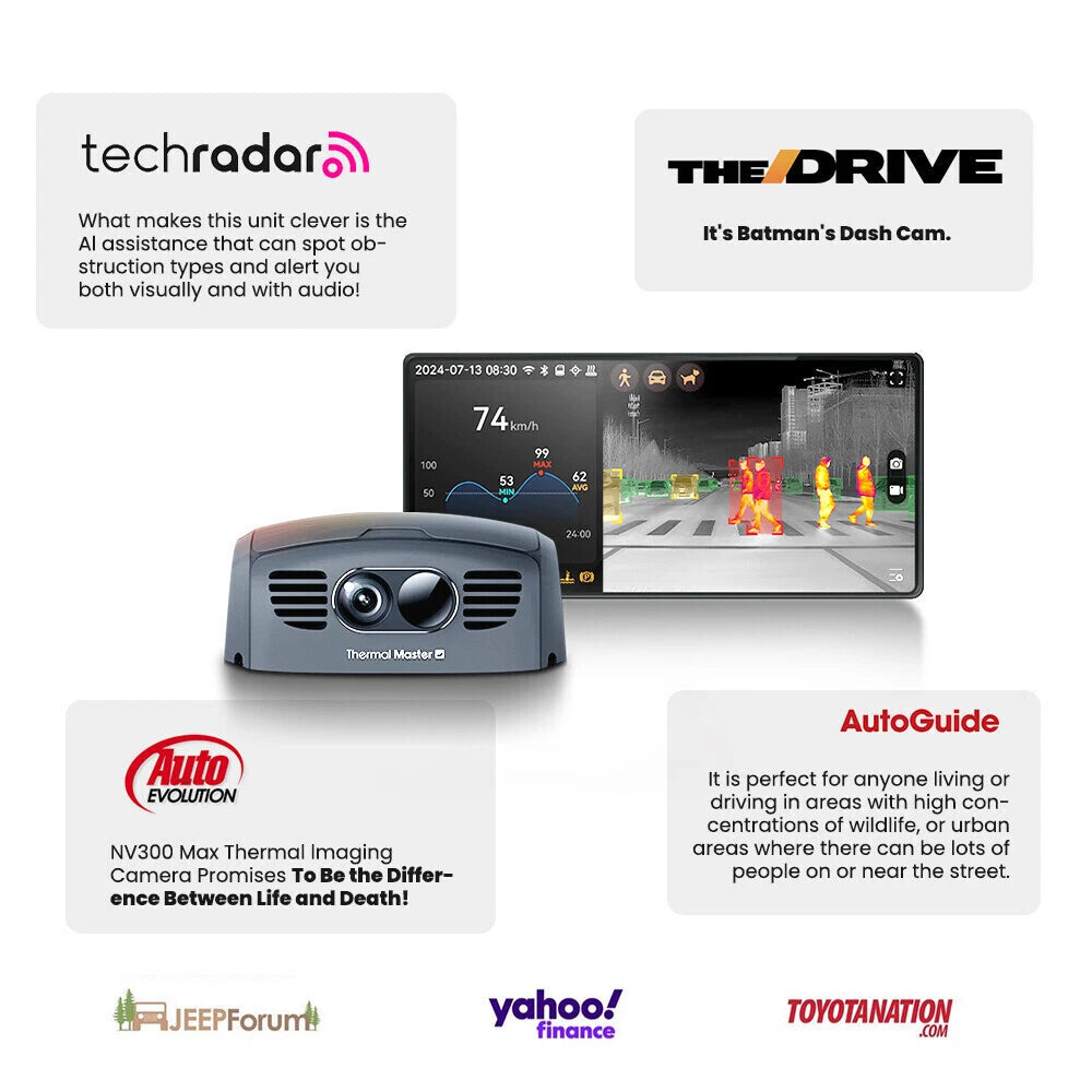 昼も夜も、さらに遠くを、より安全に。 Thermal Master NV500MAXは、最大500mの暗視視界とAI衝突警告を備えた、車載対応の高性能サーマルイメージャーです。