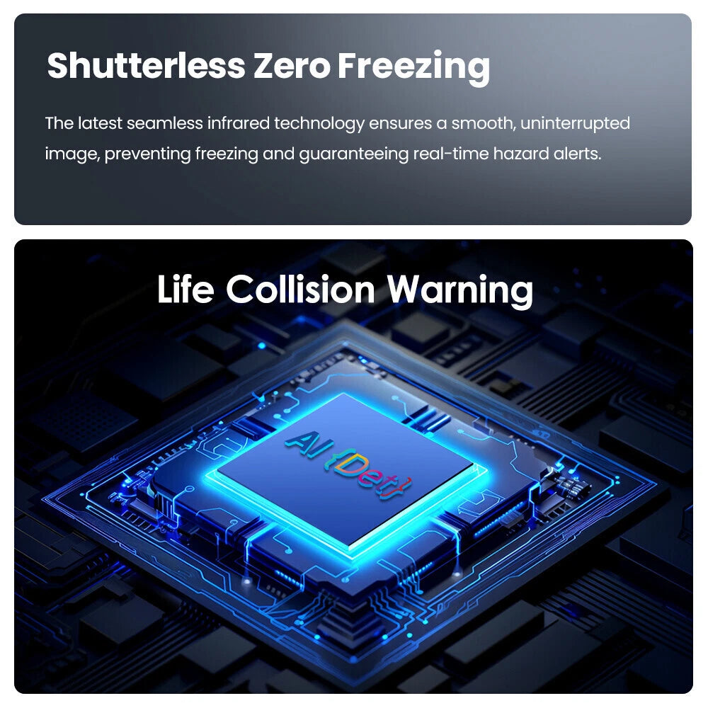 - AI衝突警告:歩行者・動物・車両をAIで自動認識し、0.1秒で音声・映像警告