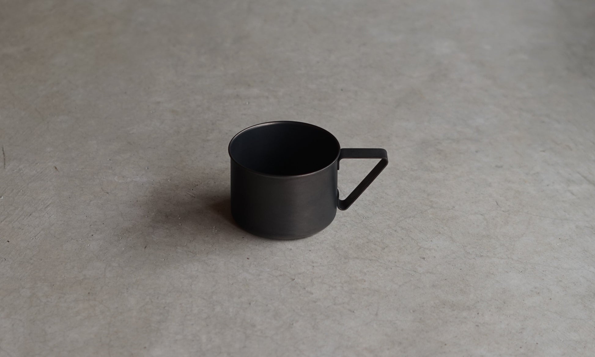 無機質になりがちなステンレス素材に、黒染めという伝統的な技術を施した 96【KURO】マグカップ。マットで深みのある黒が、コーヒーやお茶のひとときを引き締めてくれる逸品です。時間とともに色のニュアンスが変化し、使い込むほどに味わいが増していきます。