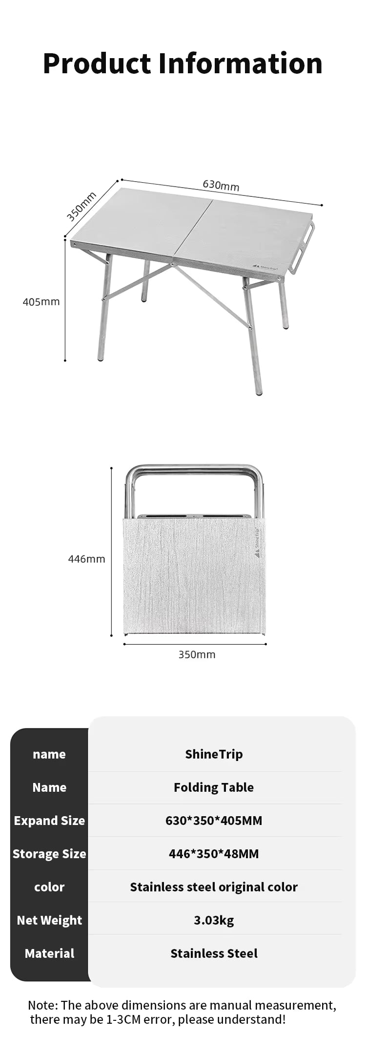 SHINETRIP ステンレス 耐熱 折りたたみキャンプテーブル(収納バッグ付)A451-T00
