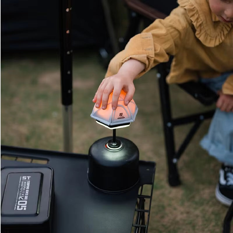 テント内や就寝時の足元灯にちょうどいい、コンパクトなナイトライト。IPX4の防滴仕様で、結露や小雨が気になるシーンでも使いやすい設計。カラーはグリーン/サンド/グレーの3色展開です。