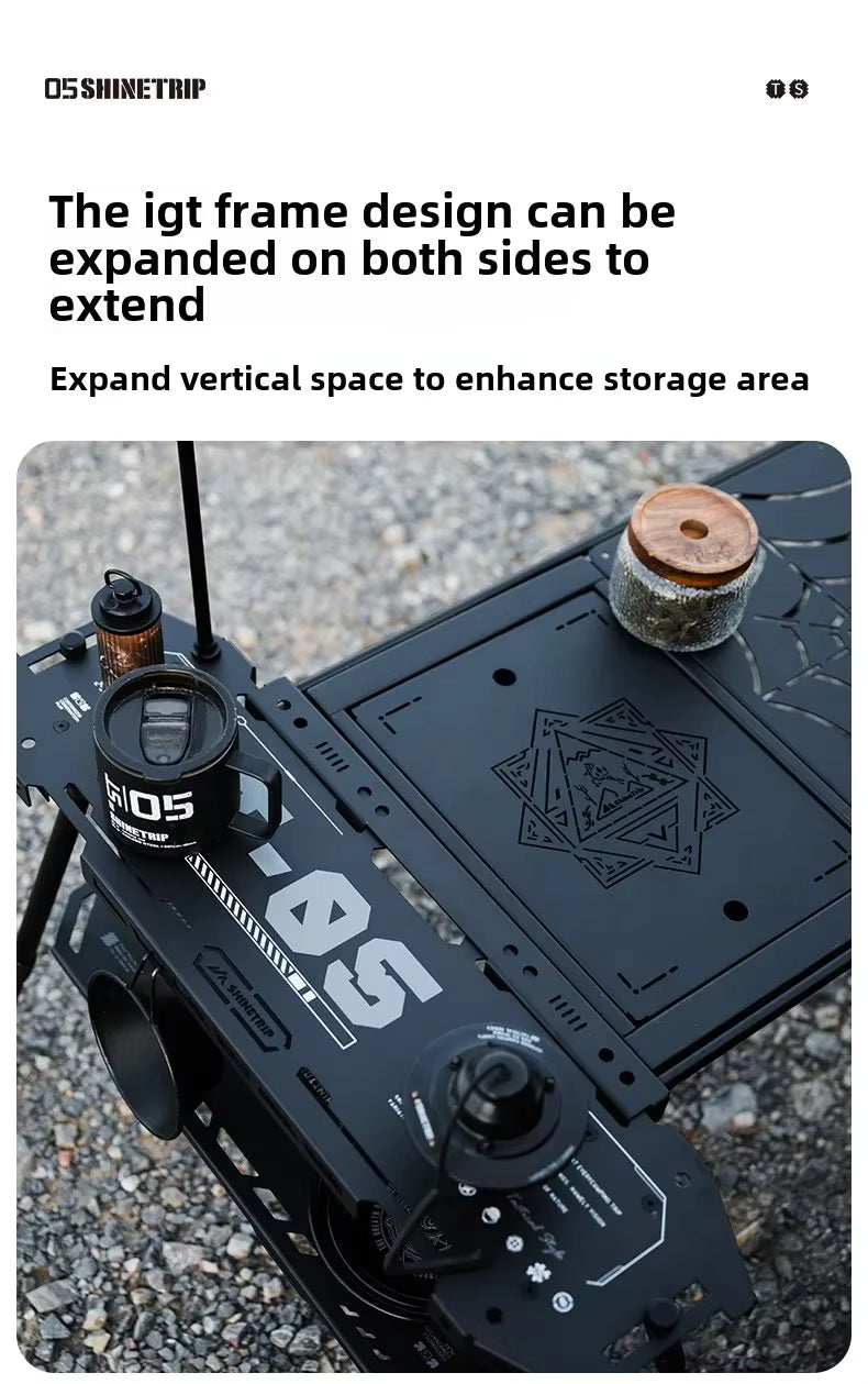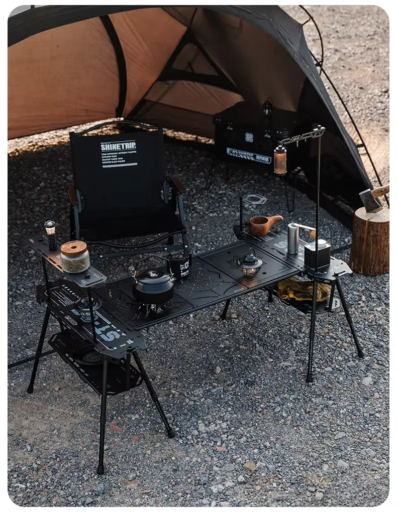 キャンプで「作業台が狭い」「ギアが散らかる」「IGT拡張したいけど、ただ長いだけだと置き場がない」という悩みを解決するのが、SHINETRIP #05シリーズ タクティカル スケートボードテーブル IGTフレームセット。