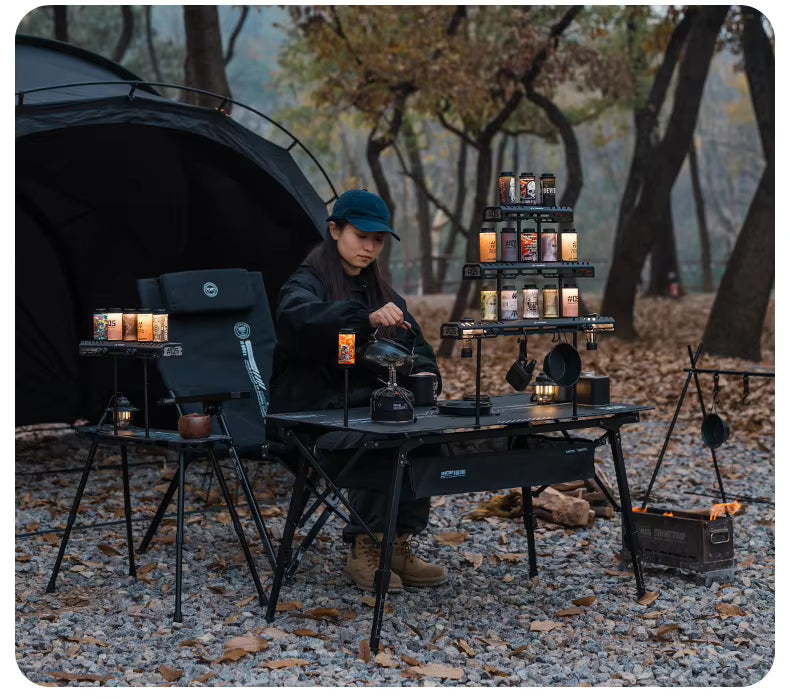 自然の中で過ごす時間を、もっと快適に、美しく。 山趣は、テント、シェルター、テーブル&チェア、キッチンシステム、照明、収納など、 キャンプシーンをトータルで支えるモジュラー構造のギアを展開。 洗練されたデザインと高い機能性を両立し、 アウトドアの自由をスタイリッシュで心地よい体験へと導きます。