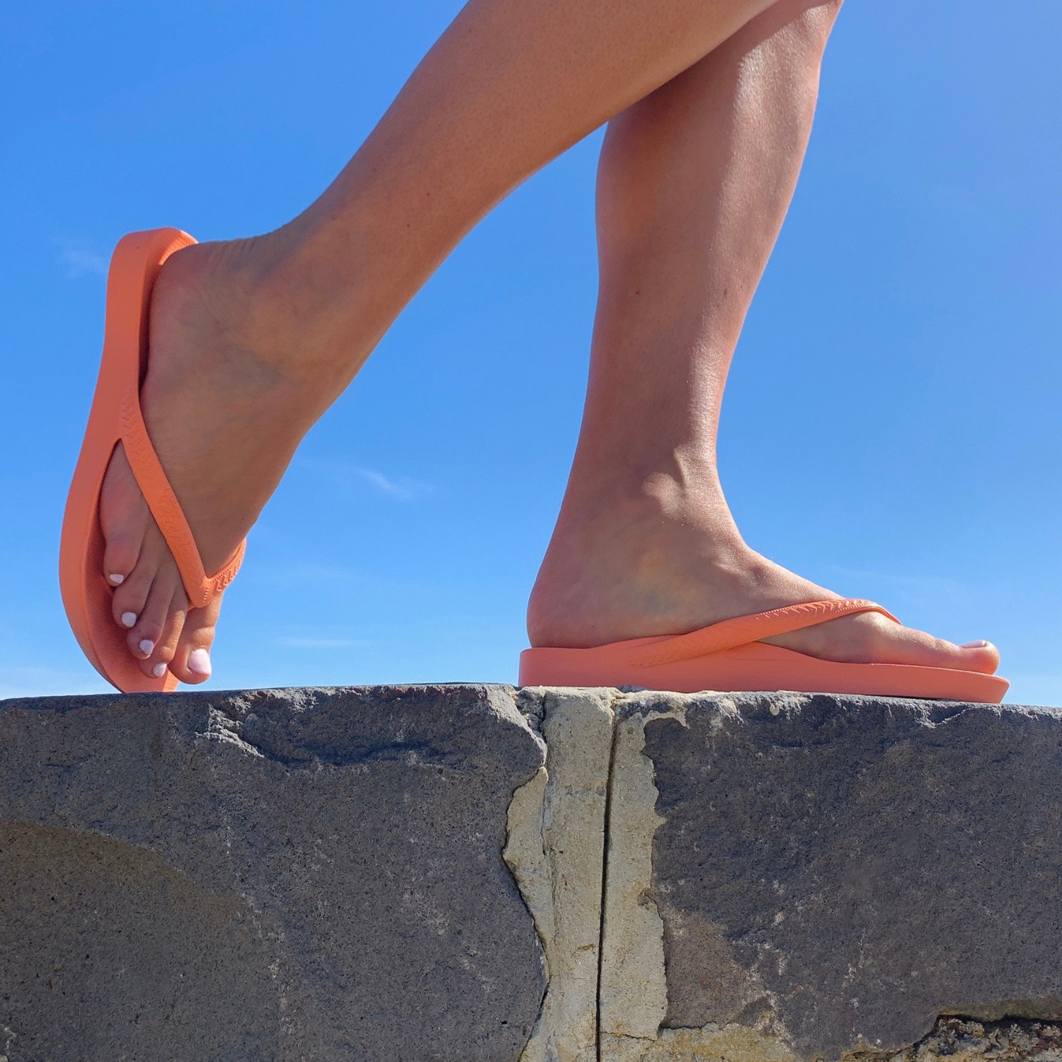 アーチーズのサンダルはあえてタイトに設計。足ポジションのサポートと、鼻緒が指からずれない独自の構造による「つま先の固定」が組み合わさることで、下半身の動きが驚くほどスムーズに。エネルギー消費を抑えた快適な歩行ができるから、たくさん歩いても疲れにくく足に優しい!