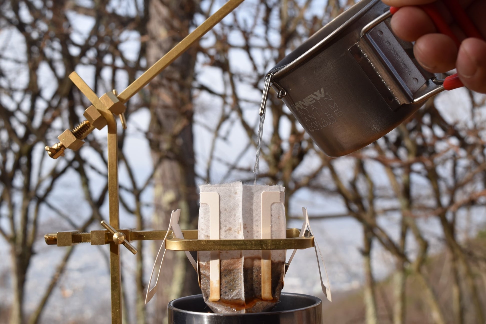 シェラカップでも使いやすく、ドリップバッグが沈むのを防ぎ、雑味のない一杯を。