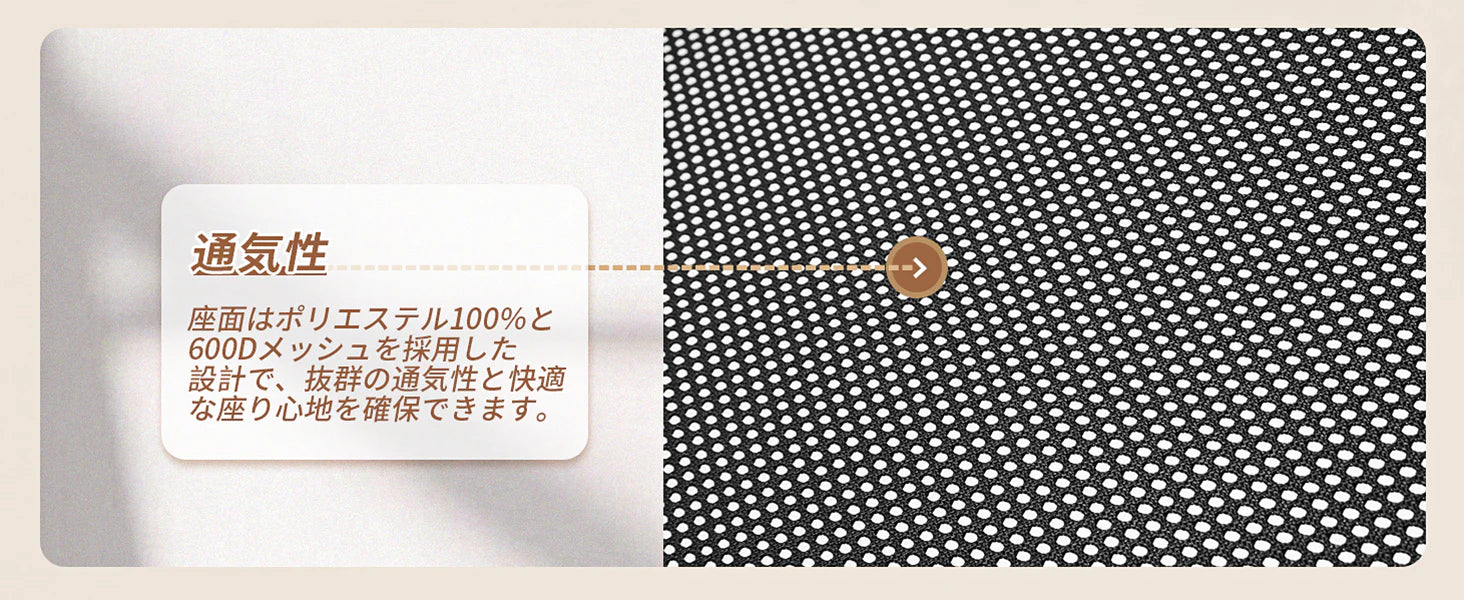 素材:シート 600Dメッシュ+ポリエステル、アームレスト 竹、フレーム 6063アルミ合金