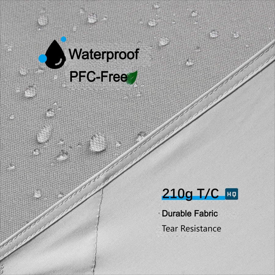 耐久性と通気性に優れたT/C(ポリコットン)生地を採用し、遮光・防水・防風機能を兼ね備えています。