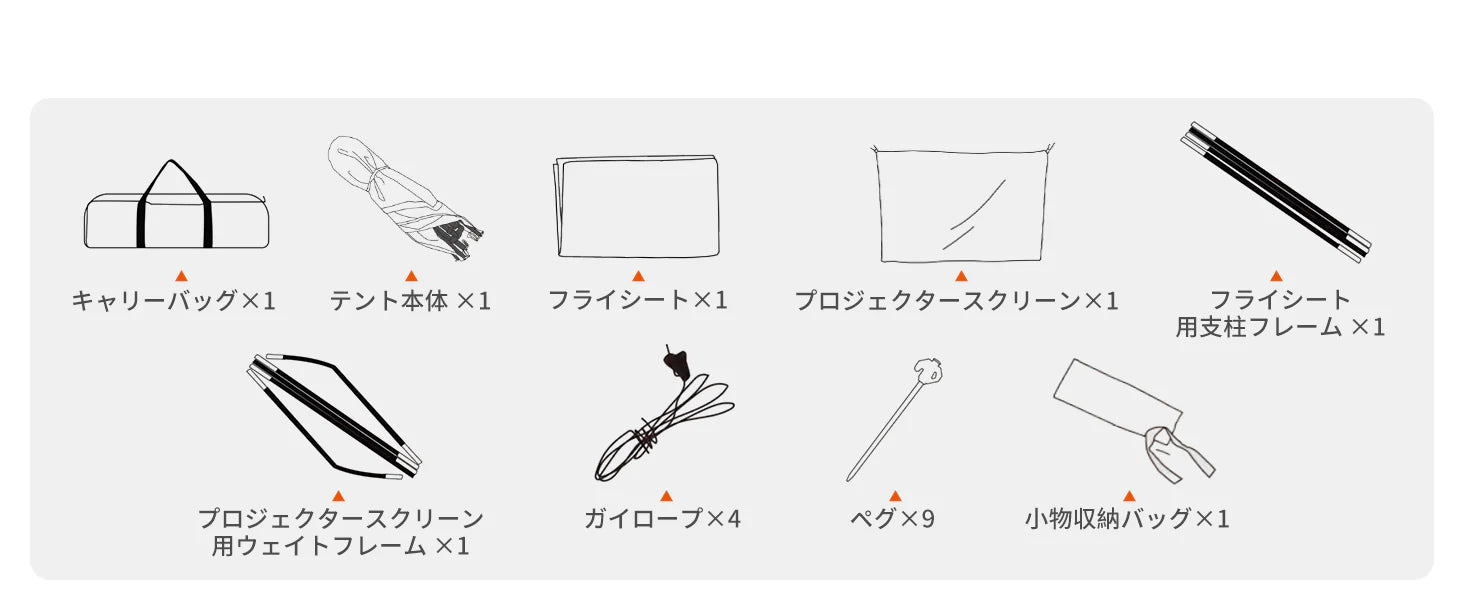 付属のムービースクリーンを使えば、夜は車内で映画鑑賞が可能。インナーテントにはランタン用S字フック、両サイドにはポケット収納を備え、電源コード用ポートも搭載。夜間の快適性と利便性を両立しました。