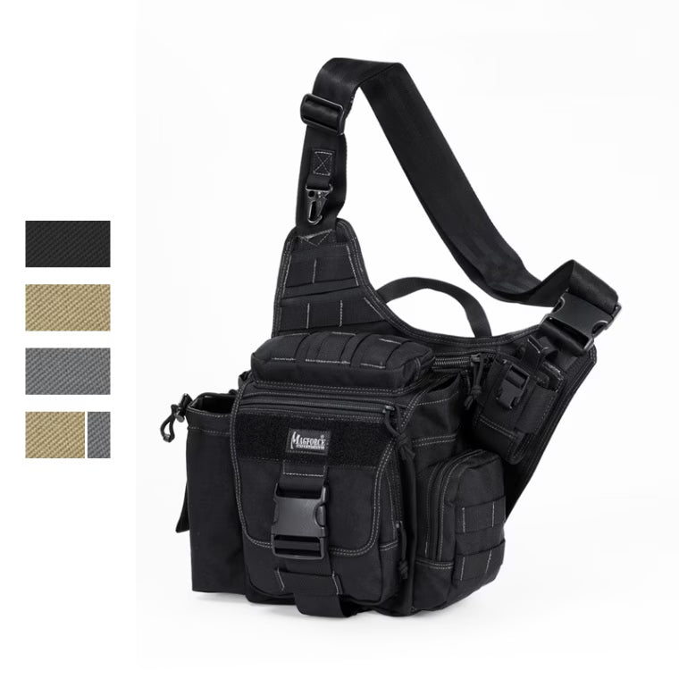 小型バッグは収納力を高めるほど内部が煩雑になりやすいという課題があります。Magforce Jumbo Versipackは、外部にポーチ、マルチシース、携帯電話ホルダー、ボトルホルダーを備え、効率的に小分け収納が可能。メインコンパートメントをスッキリ保ちながら必要な装備へ素早くアクセスできます。