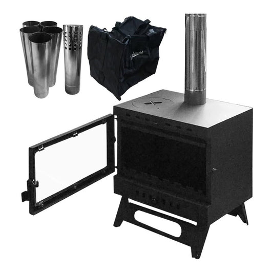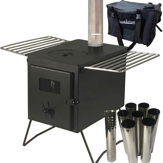 LandField ランドフィールド ワイドウィンドウ付きハンディー型薪ストーブ 煙突・収納バッグ付き LF-HOS030